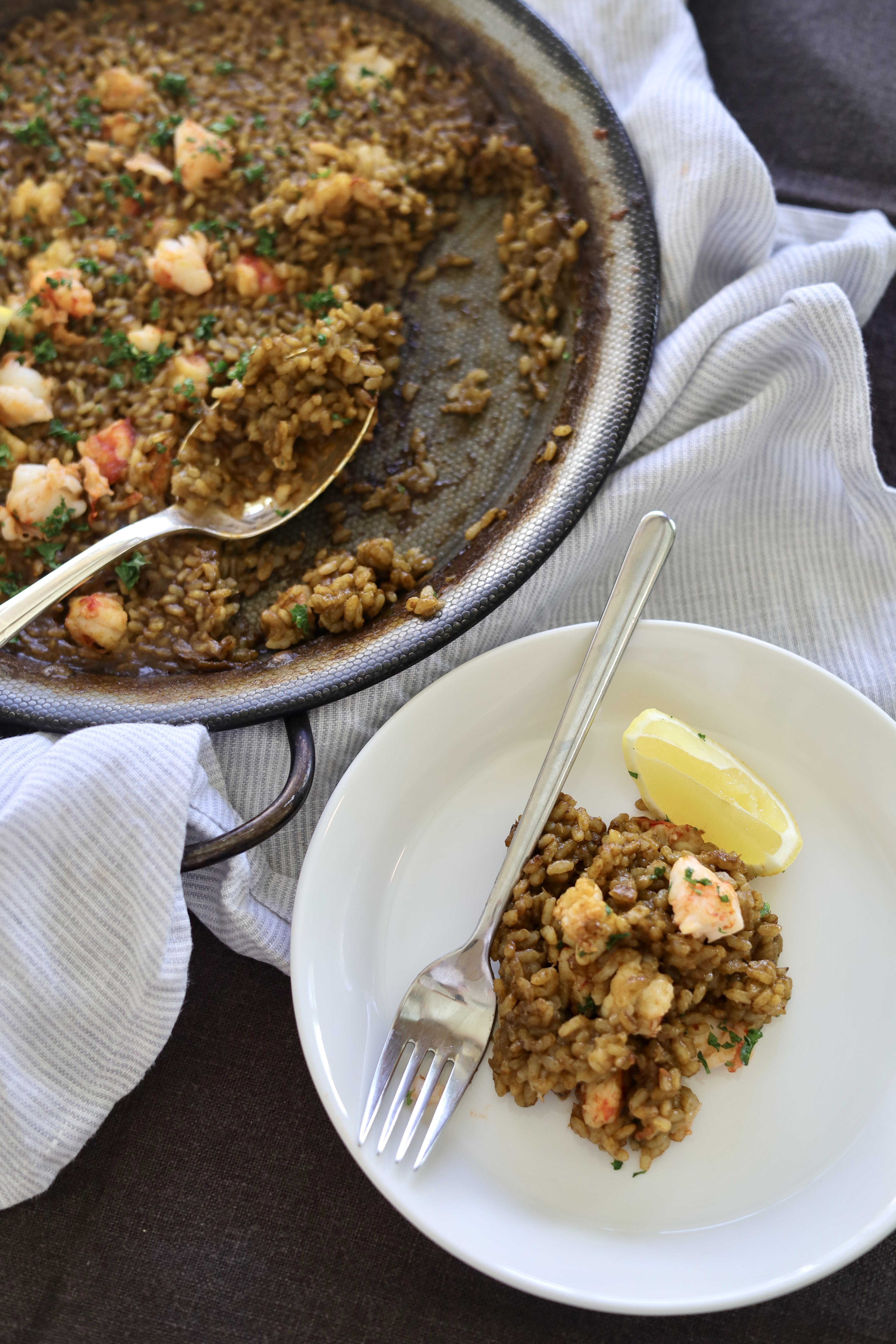 パエリアは、2種類の海老を使ってお米に海老の旨みを吸わせていきます。