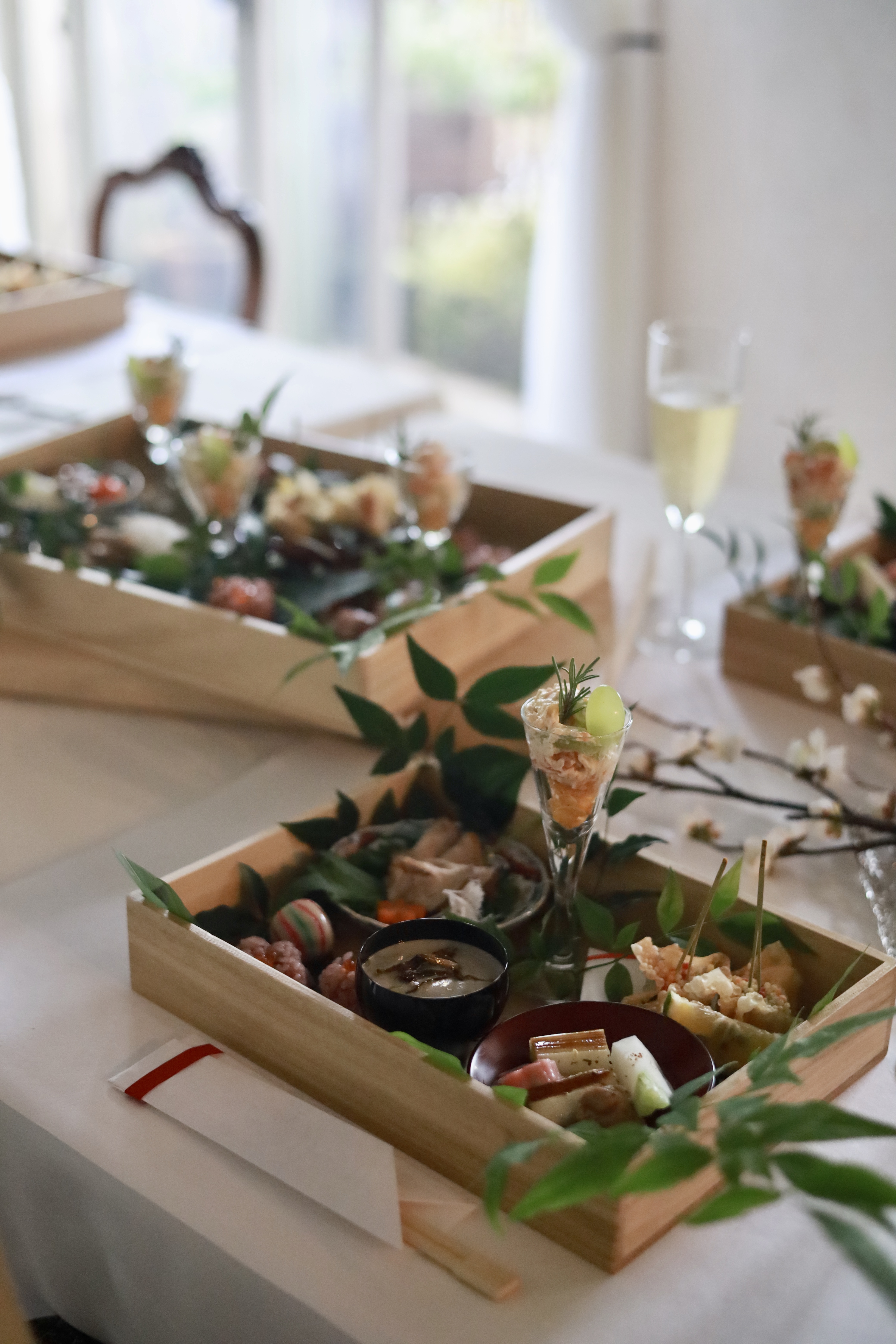 白木の料理箱を使った、季節感を取り入れたテーブルと、作りやすいレシピでご紹介する小皿料理で、スペシャルな時間をお楽しみいただければと思います。