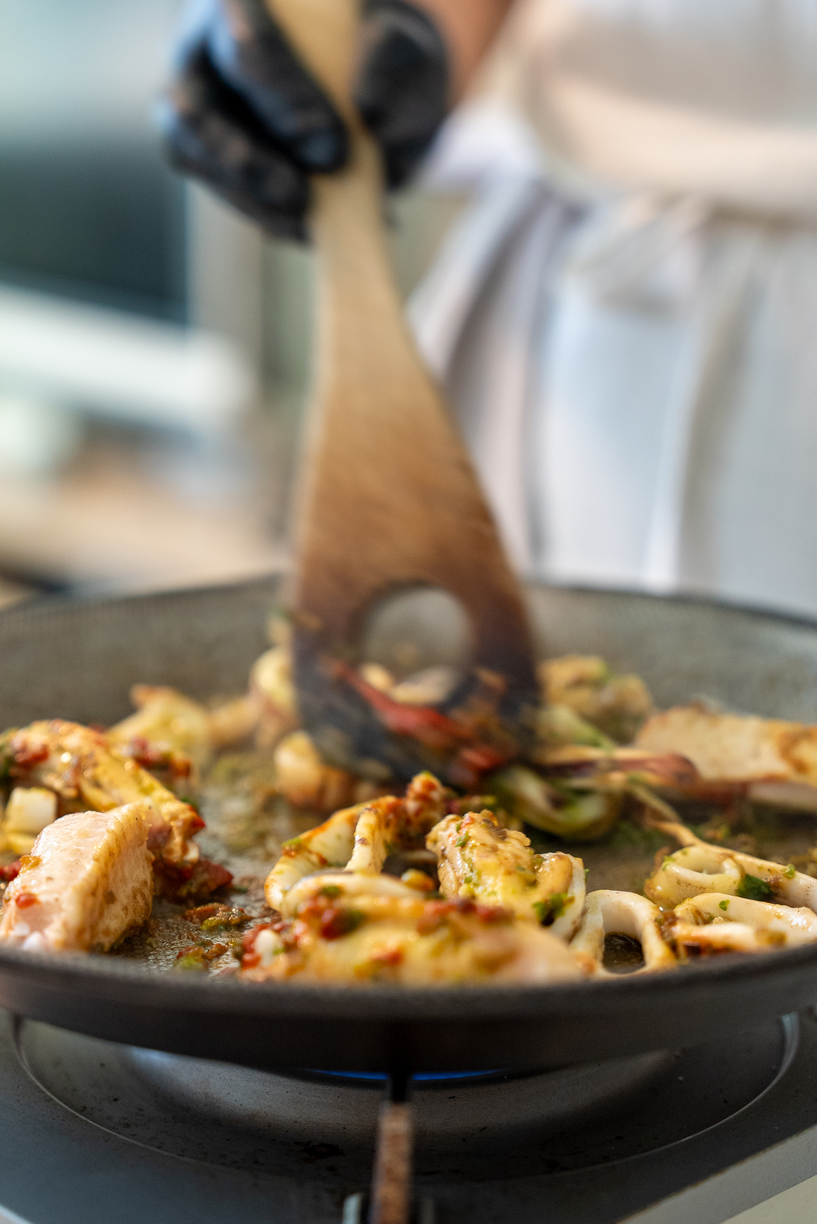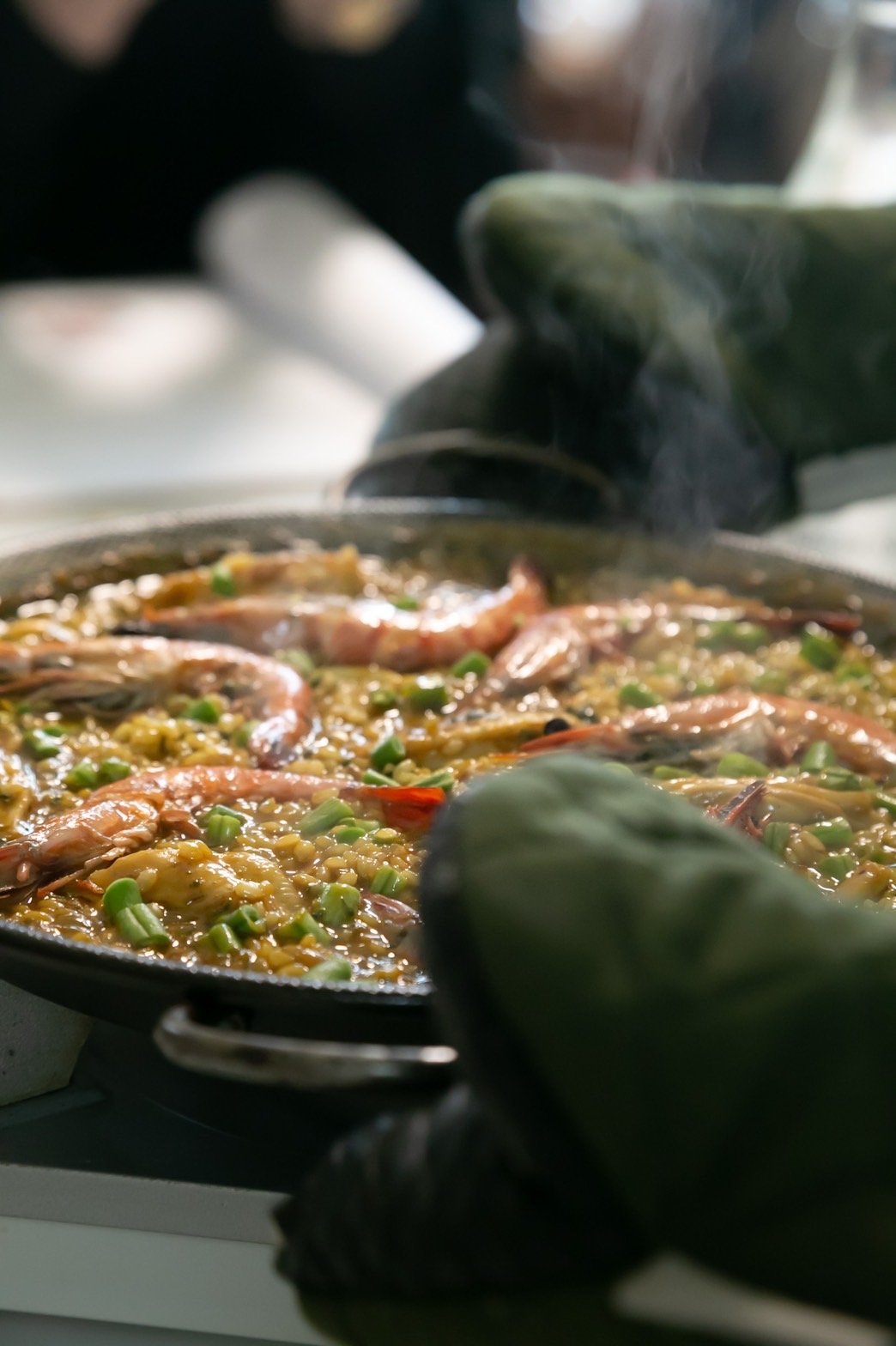 フィンガーフードを召し上がっていただいているうちに、パエリアも出来上がります。 食後の飲み物つき。